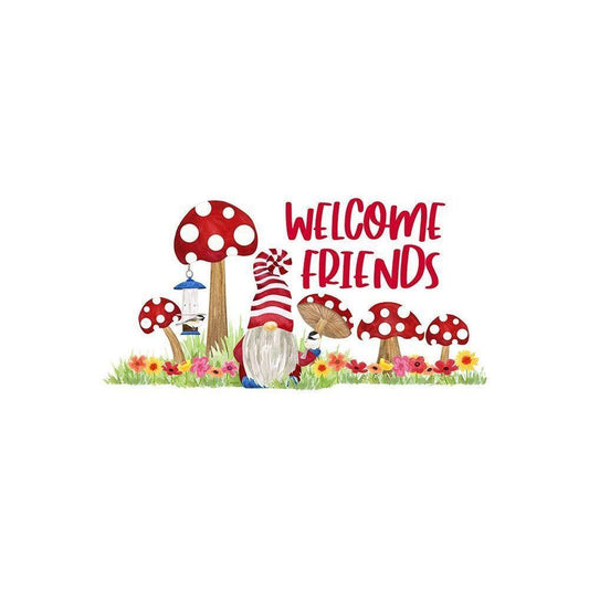 Gardening Gnomes Sentiment panel II-Welcome Friends Black Modern Wood Framed Art Print with Double Matting by Reed, Tara