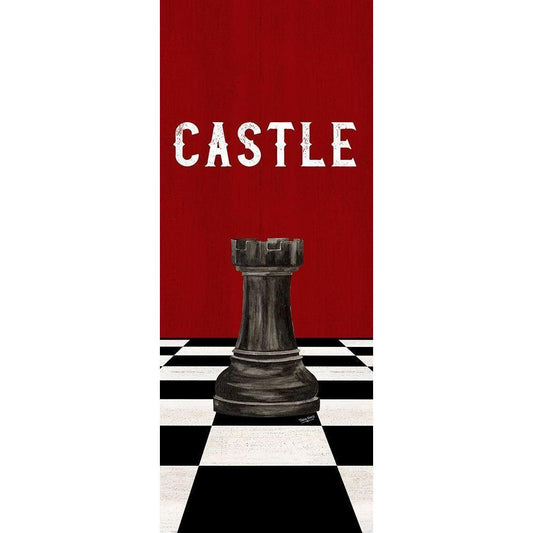 Rather be Playing Chess Pieces red panel II-Castle Black Modern Wood Framed Art Print with Double Matting by Reed, Tara