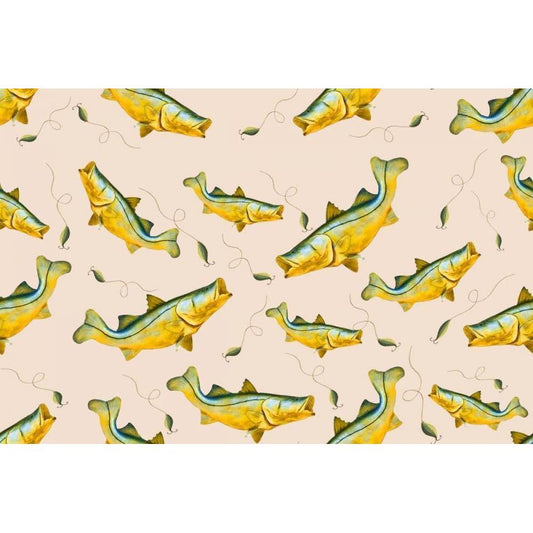 Wishin I Was Fishin Pattern Black Modern Wood Framed Art Print with Double Matting by Murdock, Ramona