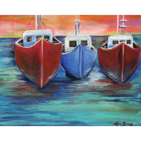 Boats Black Modern Wood Framed Art Print with Double Matting by Seay, Anne