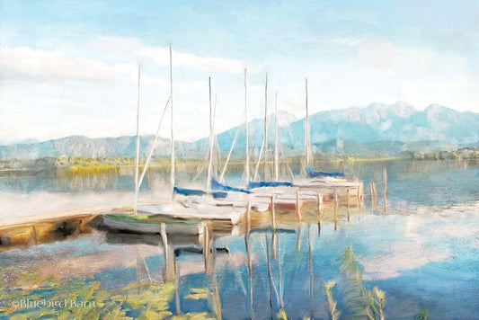 Sailboat on Water White Modern Wood Framed Art Print with Double Matting by Bluebird Barn