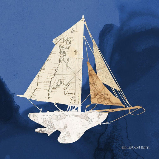 Sailboat Blue I White Modern Wood Framed Art Print with Double Matting by Bluebird Barn