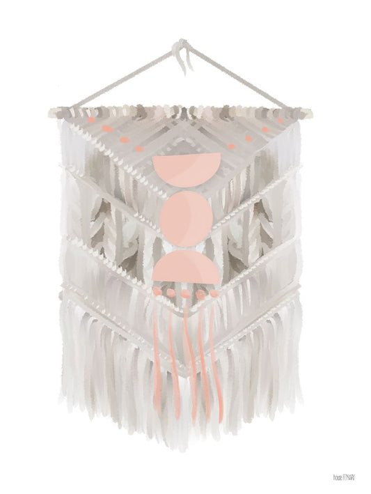 Pink Bohemian Macrame White Modern Wood Framed Art Print with Double Matting by House Fenway