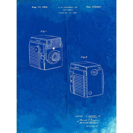 PP300-Faded Blueprint Kodak Brownie Bullseye 1954 Patent Poster Black Modern Wood Framed Art Print with Double Matting by Borders, Cole