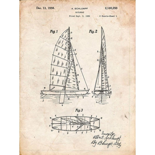 PP216-Vintage Parchment Schlumpf Sailboat Patent Poster Black Modern Wood Framed Art Print with Double Matting by Borders, Cole