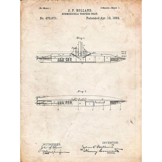 PP602-Vintage Parchment Holland 1 Submarine Patent Poster Black Modern Wood Framed Art Print with Double Matting by Borders, Cole