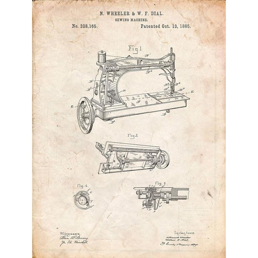 PP37-Vintage Parchment Wheeler And Wilson Sewing Machine Patent Poster Black Modern Wood Framed Art Print with Double Matting by Borders, Cole