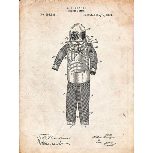 PP343-Vintage Parchment Hemenger Diving Armor Poster Black Modern Wood Framed Art Print with Double Matting by Borders, Cole