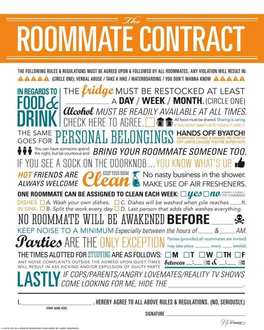 Roommate Contract White Modern Wood Framed Art Print with Double Matting by Brando, JJ