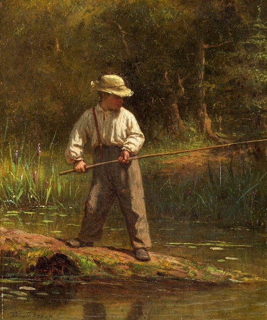 Boy Fishing White Modern Wood Framed Art Print with Double Matting by Johnson, Eastman