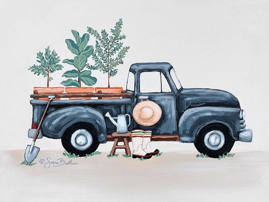 Red Truck Fishing Buddy White Modern Wood Framed Art Print with Double Matting by Baker, Sara