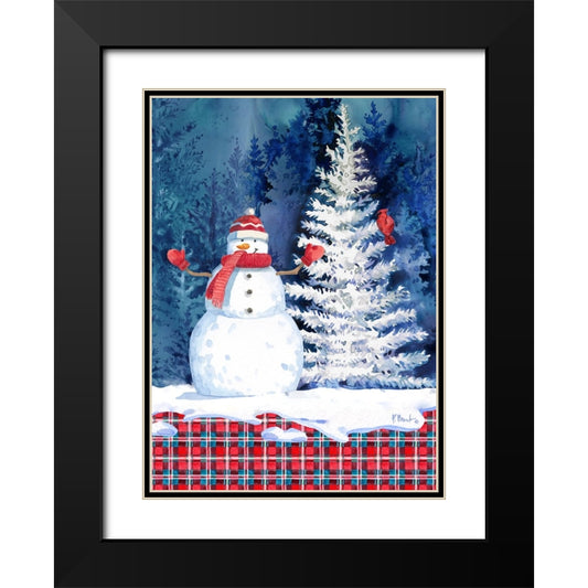 Frosted Snowman Vertical Black Modern Wood Framed Art Print with Double Matting by Brent, Paul