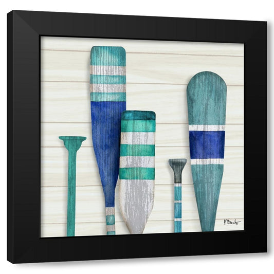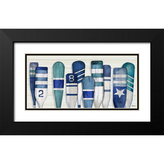 Port Oars Horizontal - Blue Black Modern Wood Framed Art Print with Double Matting by Brent, Paul