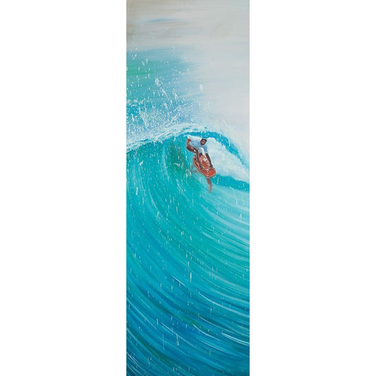 SURFER IN THE MIDDLE OF THE WAVE White Modern Wood Framed Art Print by Atelier B Art Studio