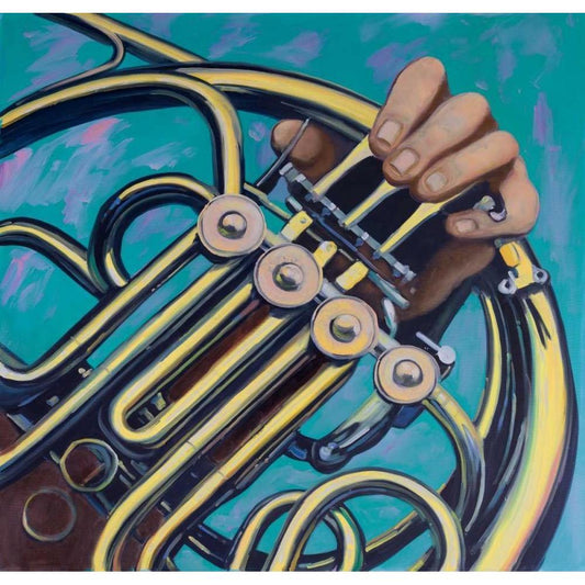 Musicien with French Horn White Modern Wood Framed Art Print by Atelier B Art Studio