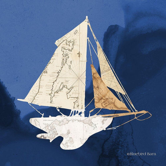 Sailboat Blue I White Modern Wood Framed Art Print by Bluebird Barn