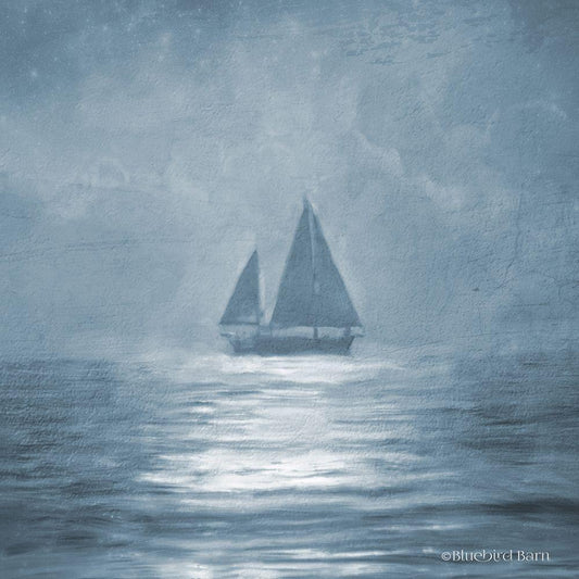 Solo Blue Sea Sailboat White Modern Wood Framed Art Print by Bluebird Barn