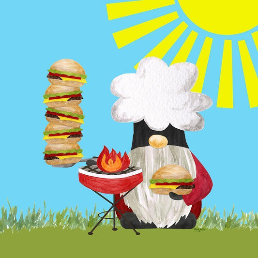 Gnome Grill Masters II White Modern Wood Framed Art Print by Reed, Tara