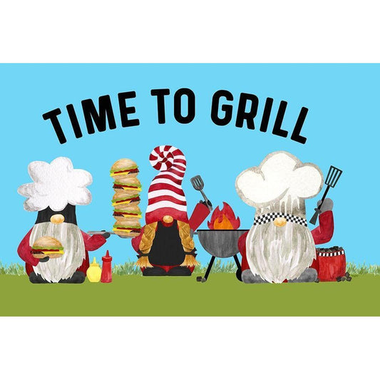 Gnome Grill Masters sentiment landscape II-Time to Grill White Modern Wood Framed Art Print by Reed, Tara