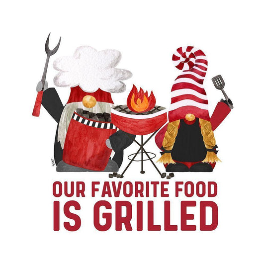 Gnome Grill Masters sentiment II-Favorite White Modern Wood Framed Art Print by Reed, Tara