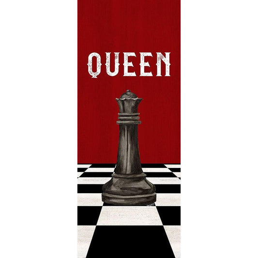 Rather be Playing Chess Pieces red panel VI-Queen White Modern Wood Framed Art Print by Reed, Tara