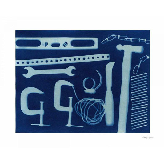 Cyanotype Tools X White Modern Wood Framed Art Print by Green, Nancy