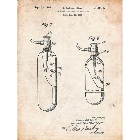 PP981-Vintage Parchment Oxygen Tank Poster White Modern Wood Framed Art Print by Borders, Cole