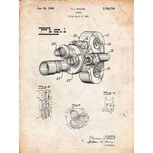 PP985-Vintage Parchment Photographic Camera Patent Poster White Modern Wood Framed Art Print by Borders, Cole