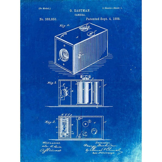 PP126- Faded Blueprint Eastman Kodak Camera Patent Poster White Modern Wood Framed Art Print by Borders, Cole