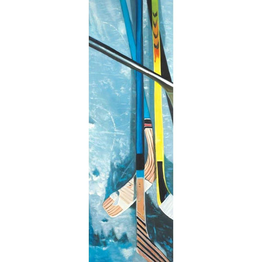 Hockey Sticks on Ice Gold Ornate Wood Framed Art Print with Double Matting by Atelier B Art Studio