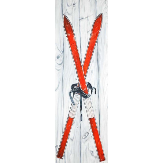 Vintage Red Ski Gold Ornate Wood Framed Art Print with Double Matting by Atelier B Art Studio
