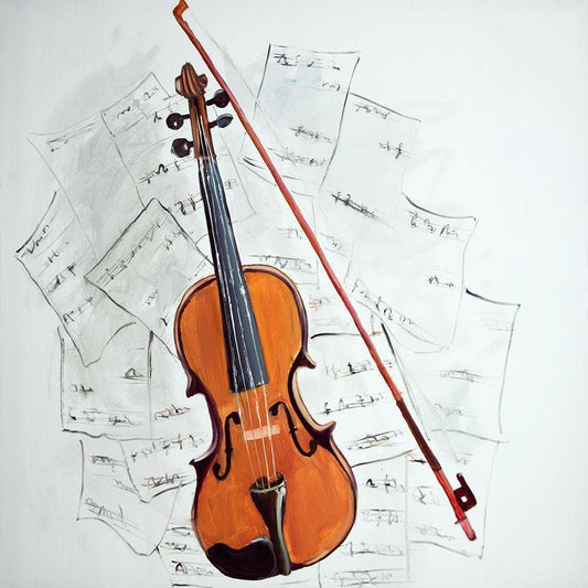 VIOLIN ON MUSIC SHEET Gold Ornate Wood Framed Art Print with Double Matting by Atelier B Art Studio