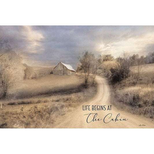 Life Begins at the Cabin Gold Ornate Wood Framed Art Print with Double Matting by Deiter, Lori