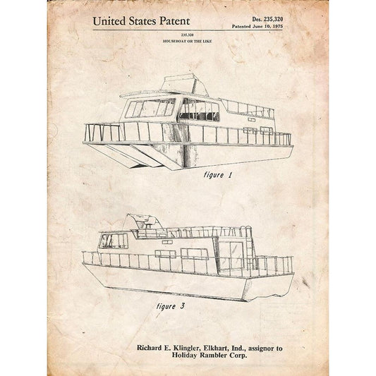 PP884-Vintage Parchment Houseboat Patent Poster Gold Ornate Wood Framed Art Print with Double Matting by Borders, Cole