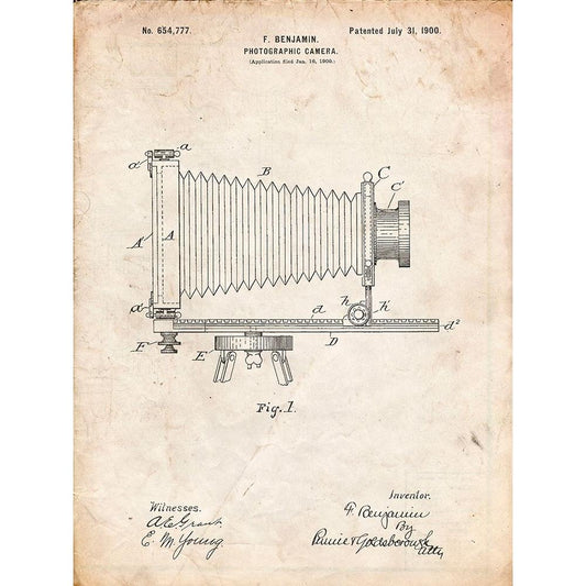 PP985-Vintage Parchment Photographic Camera Patent Poster Gold Ornate Wood Framed Art Print with Double Matting by Borders, Cole