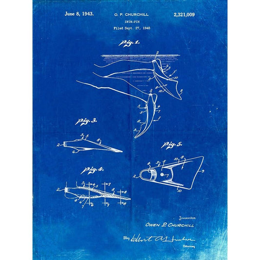 PP1079-Faded Blueprint Swim Fins Patent Poster Gold Ornate Wood Framed Art Print with Double Matting by Borders, Cole