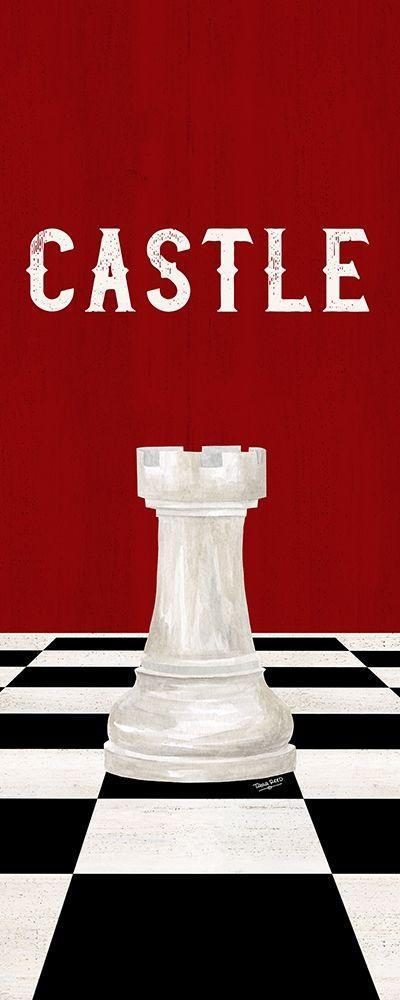 Rather be Playing Chess Pieces red panel II-Castle White Modern Wood Framed Art Print with Double Matting by Reed, Tara