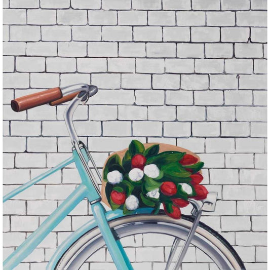 Bicycle with Tulips Flowers in Basket Black Modern Wood Framed Art Print by Atelier B Art Studio
