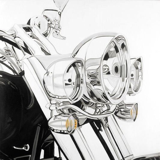 Motorcycle light Black Modern Wood Framed Art Print by Atelier B Art Studio