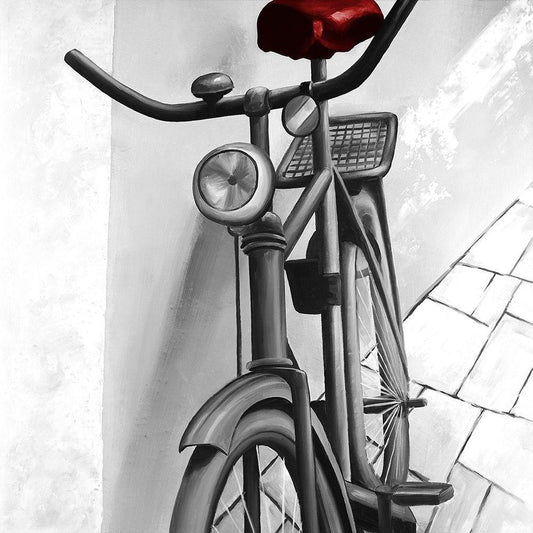 Front Wheel of Bicycle Black Modern Wood Framed Art Print by Atelier B Art Studio