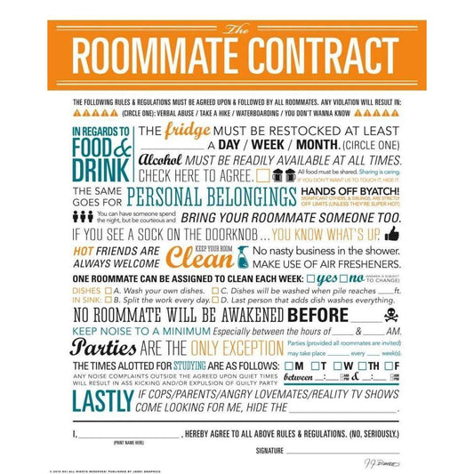Roommate Contract Black Modern Wood Framed Art Print by Brando, JJ