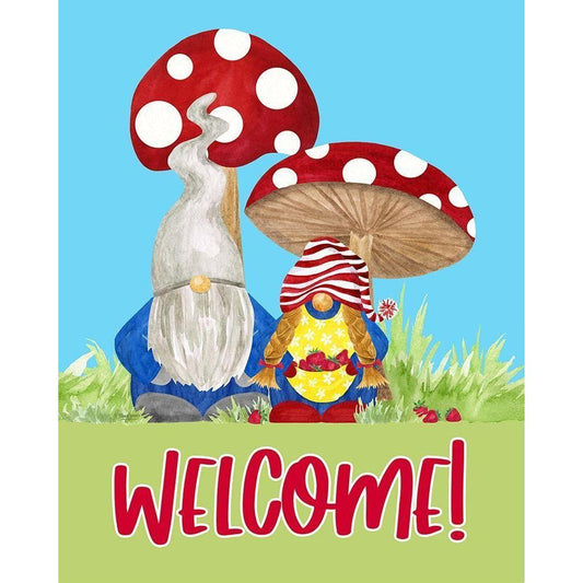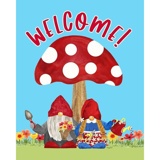 Gardening Gnomes Sentiment portrait II-Welcome Black Modern Wood Framed Art Print by Reed, Tara