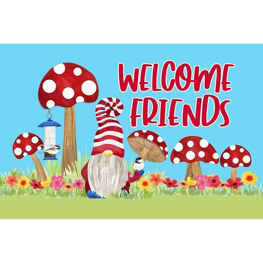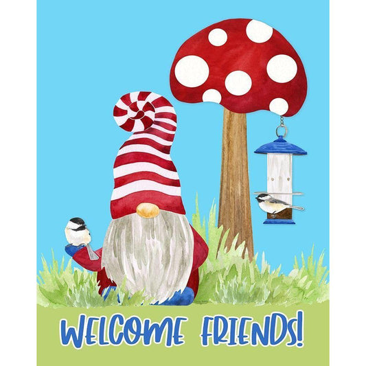 Gardening Gnomes Sentiment portrait IV-Welcome Friends Black Modern Wood Framed Art Print by Reed, Tara