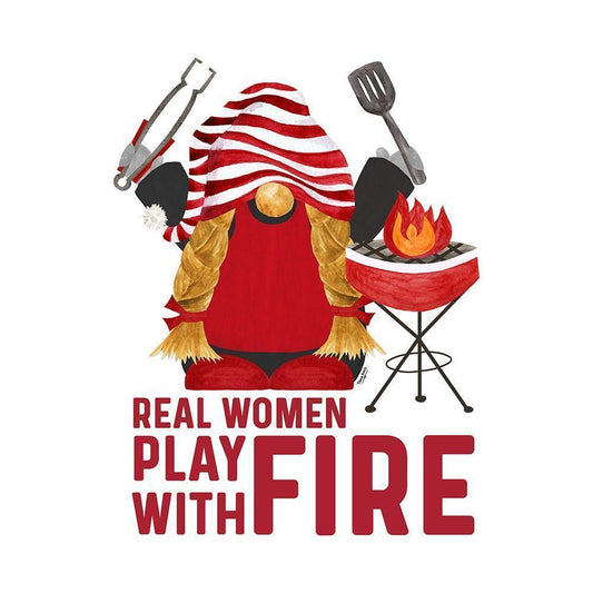 Gnome Grill Masters sentiment V-Play with Fire Black Modern Wood Framed Art Print by Reed, Tara