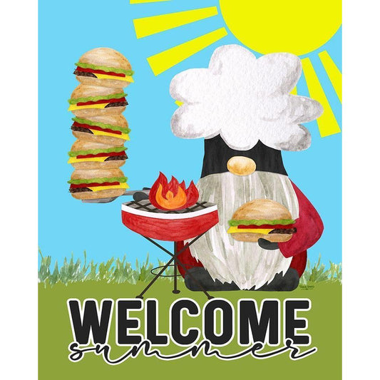 Gnome Grill Masters sentiment portrait II-Welcome Black Modern Wood Framed Art Print by Reed, Tara