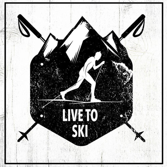Live to Ski Black Modern Wood Framed Art Print by Wieners, Valerie