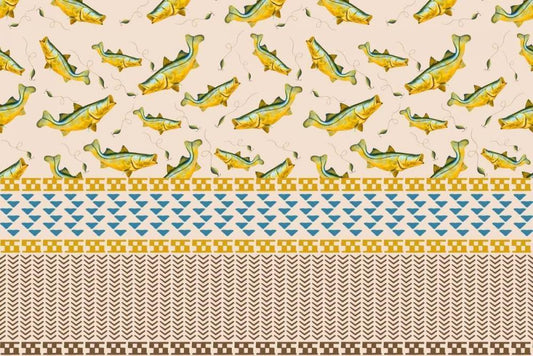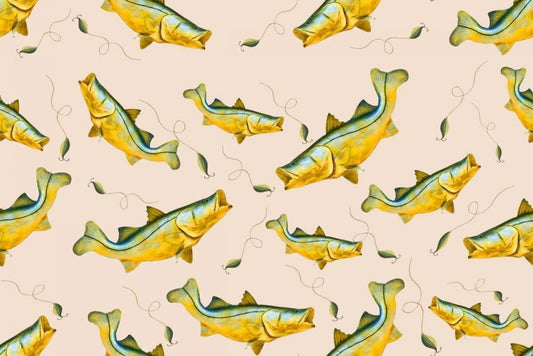 Wishin I Was Fishin Pattern White Modern Wood Framed Art Print with Double Matting by Murdock, Ramona