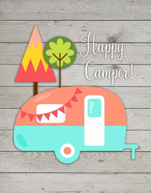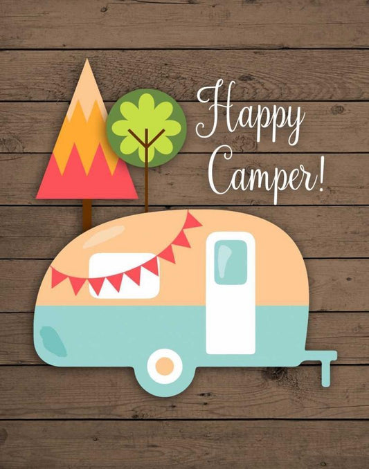 Happy Camper White Modern Wood Framed Art Print with Double Matting by Robinson, Tamara