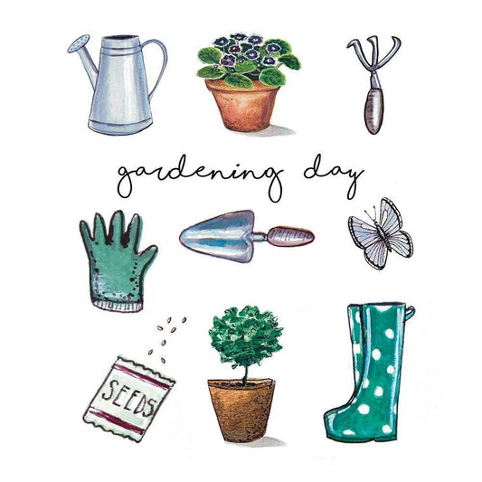 Gardening Day Black Modern Wood Framed Art Print by Tyndall, Elizabeth