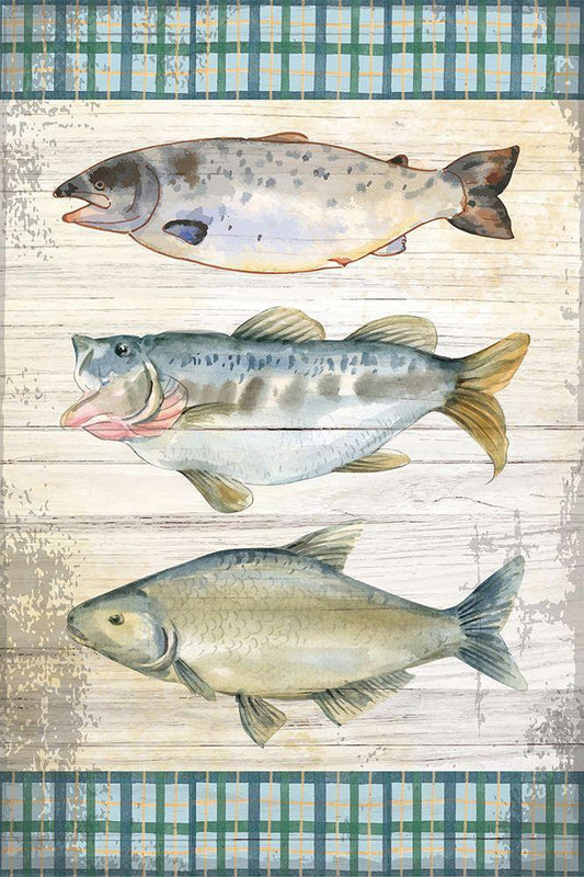Lodge Fish White Modern Wood Framed Art Print with Double Matting by ND Art